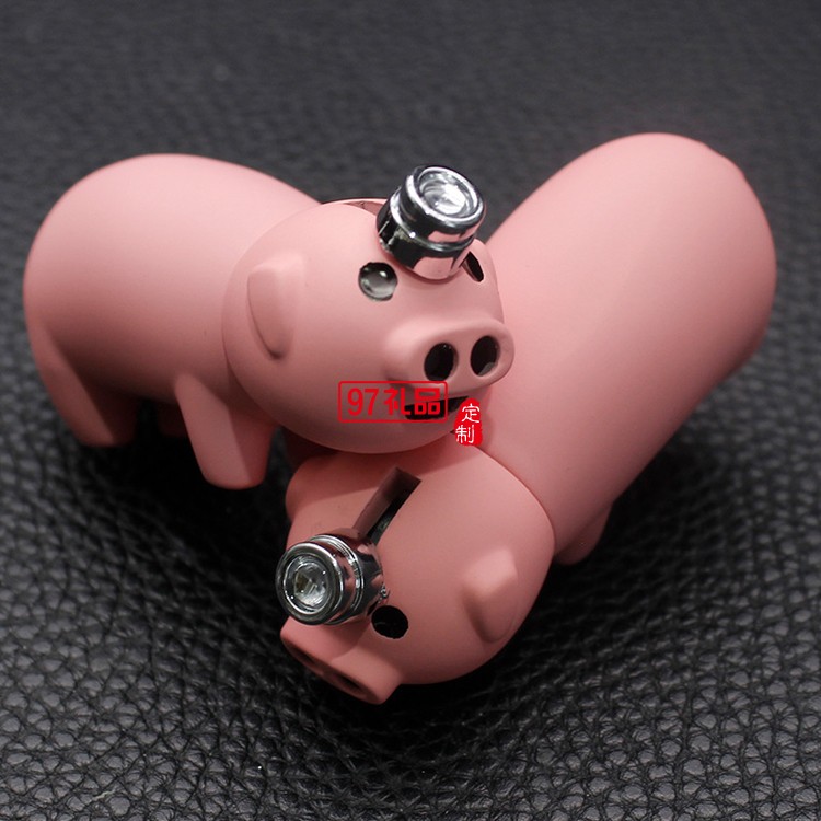創意小豬雙火充氣打火機定制logo定制公司廣告促銷禮品