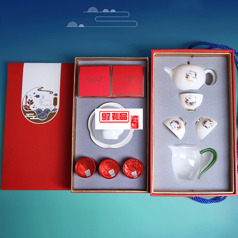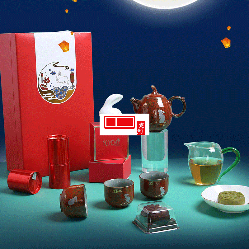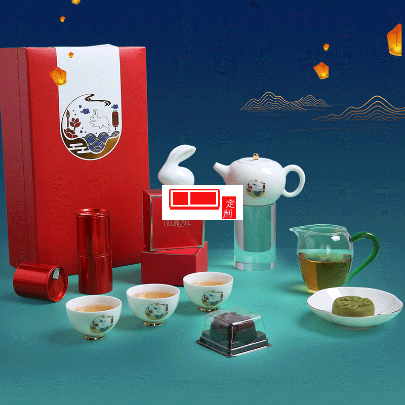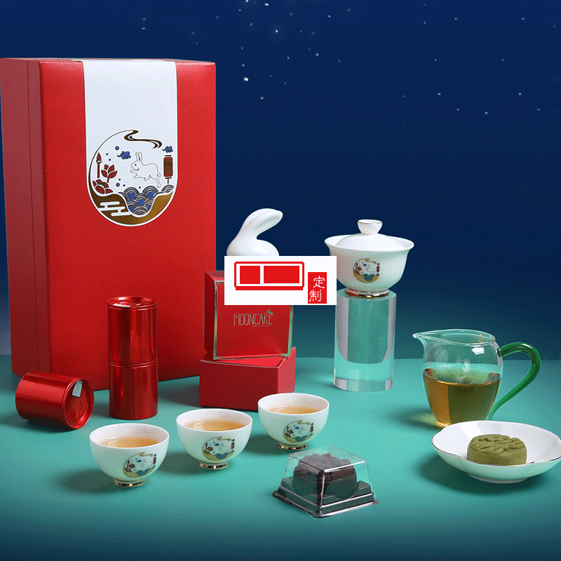 中秋禮品企業定制logo茶具月餅茶葉伴手禮