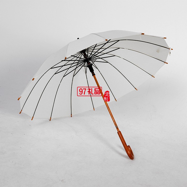 復古雨傘16骨長柄木桿純色日系簡約直桿傘廣告傘