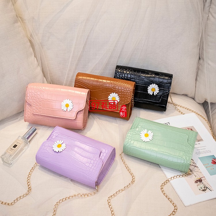 新款小菊掛飾鏈條鱷魚紋小方包時尚休閑手機包現(xiàn)貨