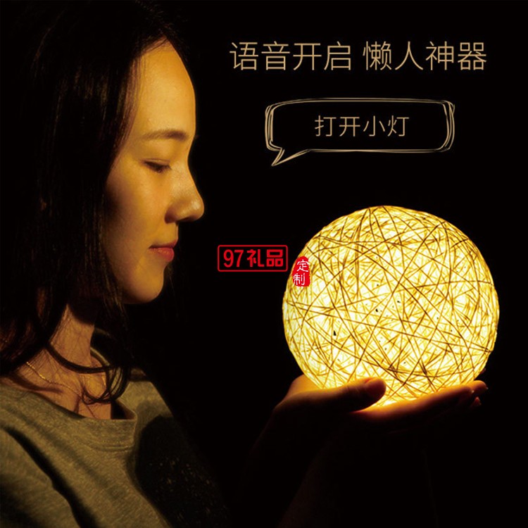 禮品小夜燈智能臺燈LED智能語音調光聲控式USB藤球燈