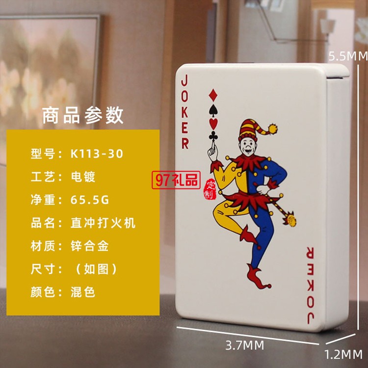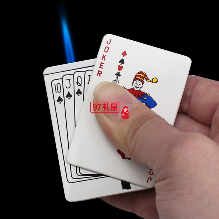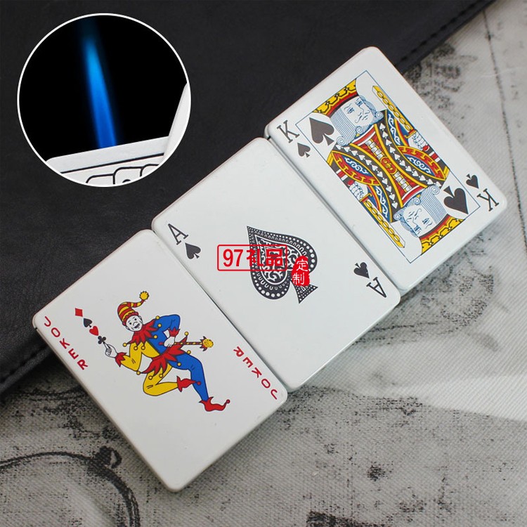 創意撲克造型防風藍焰打火機金屬直沖氣體點煙器