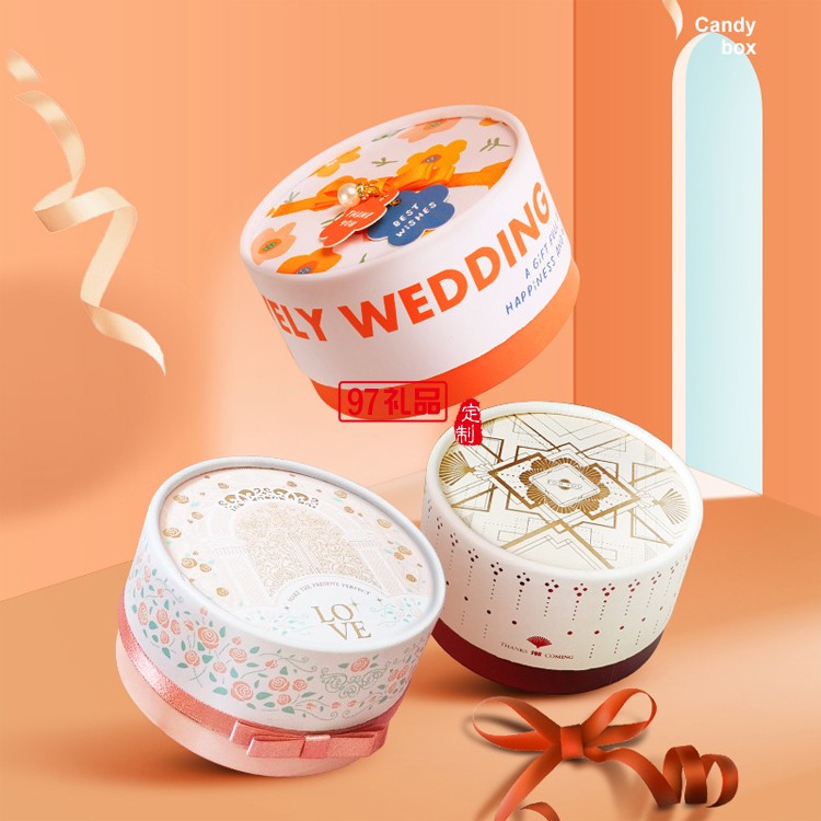 喜糖盒圓盒高檔ins伴手禮盒空盒圓形免折疊禮物盒