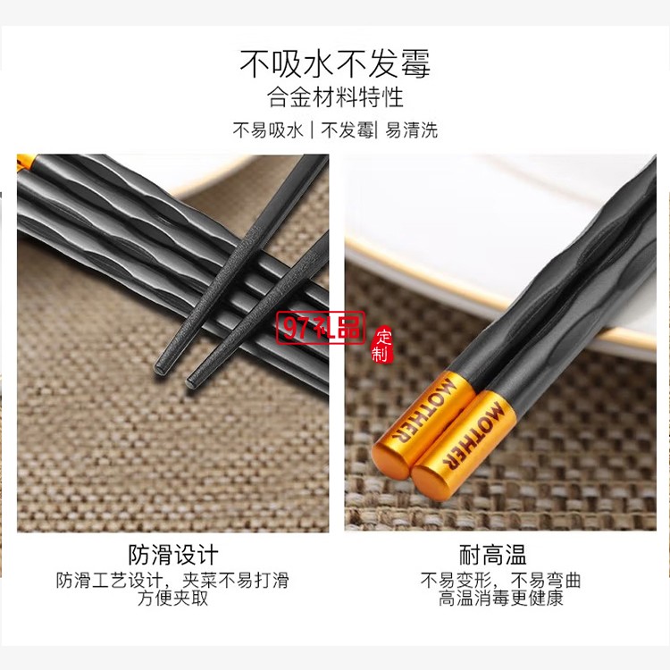 歐美達合金筷子套裝3雙防滑防霉筷子 3雙裝定制公司廣告禮品