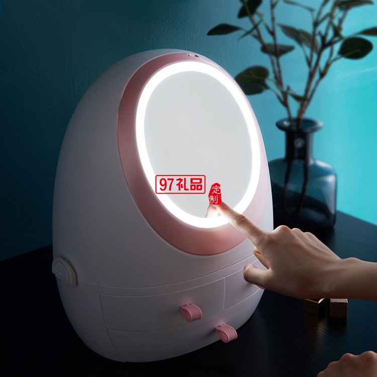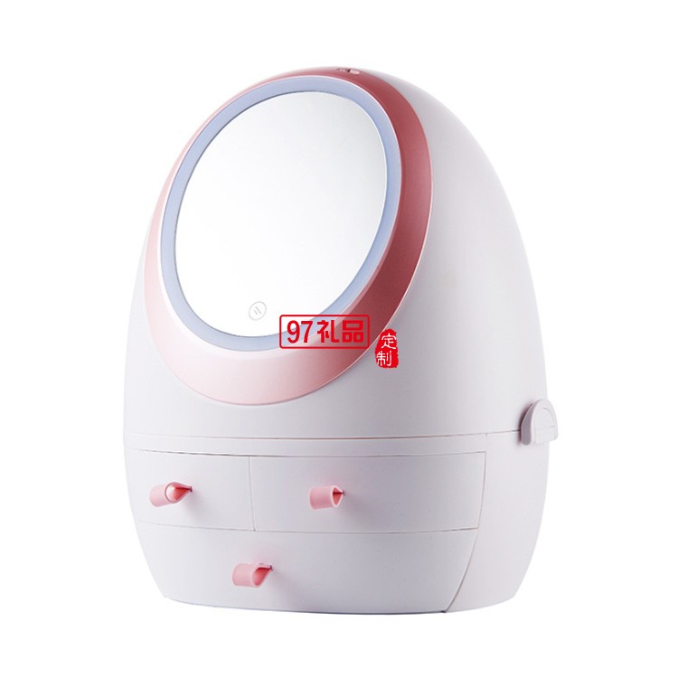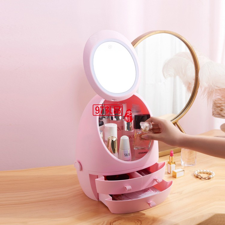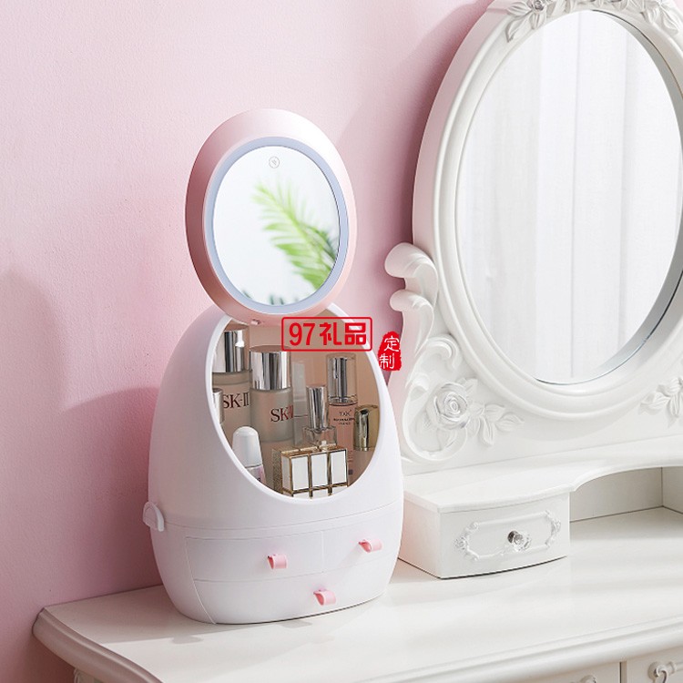 抽屜式化妝品收納盒帶LED鏡子  可定制LOGO定制公司廣告禮品