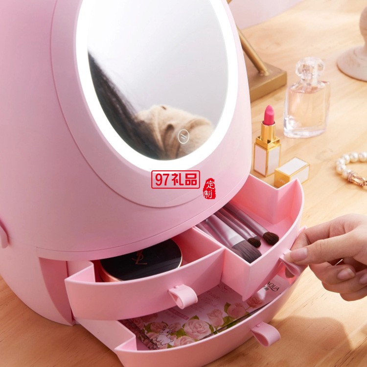 抽屜式化妝品收納盒帶LED鏡子 可定制LOGO定制公司廣告禮品