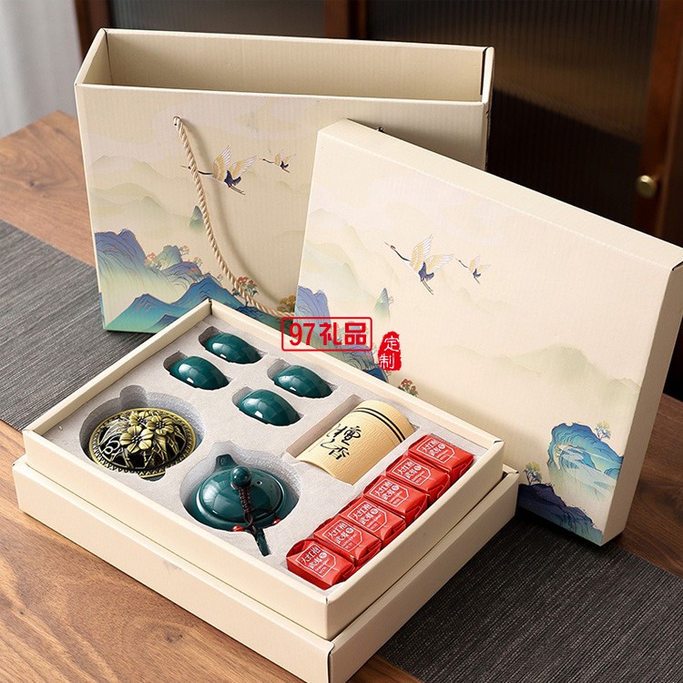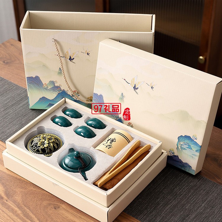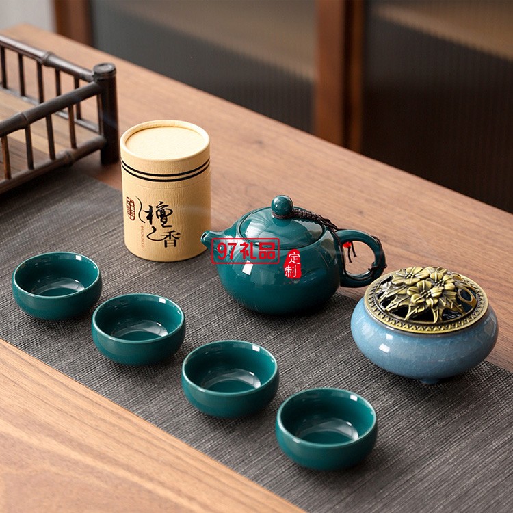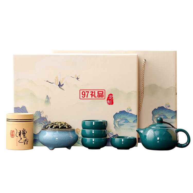 國潮中國風(fēng)商務(wù)禮品茶具青瓷西施壺1壺4杯香爐檀香組合套裝