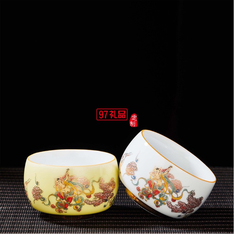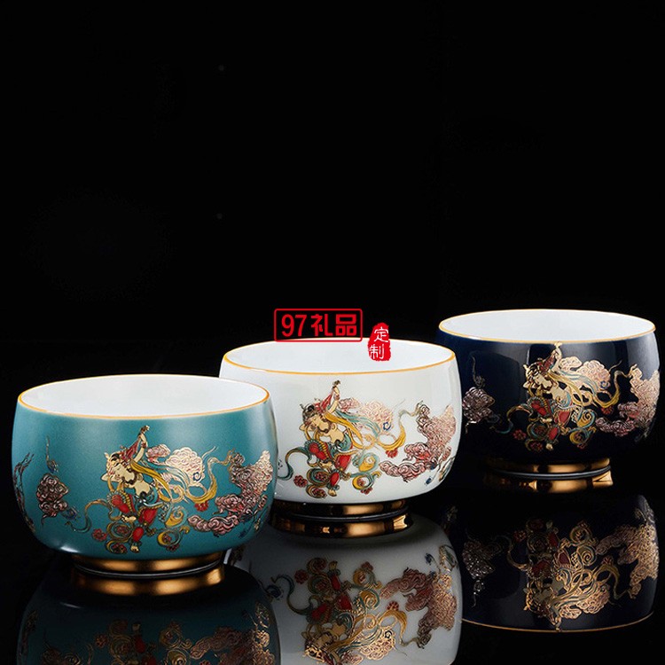 彩陶瓷主人杯茶杯品茗杯建盞大單杯功夫茶具禮品杯子定制