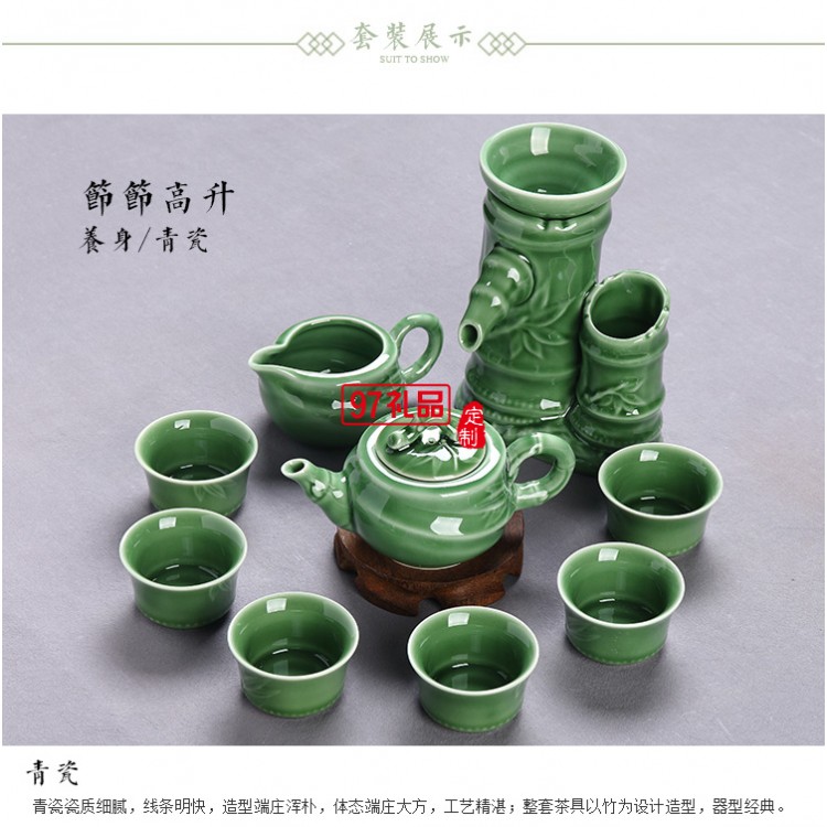 高檔青瓷陶瓷茶具套組禮盒10頭功夫茶壺套裝送客戶禮品定制