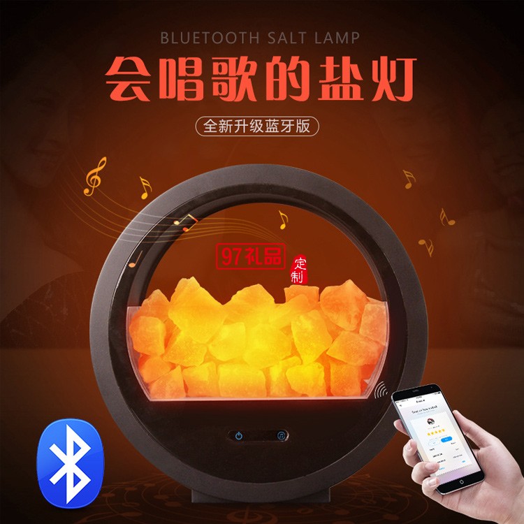 創(chuàng)意水晶鹽燈藍牙音箱高檔禮品擺件定制