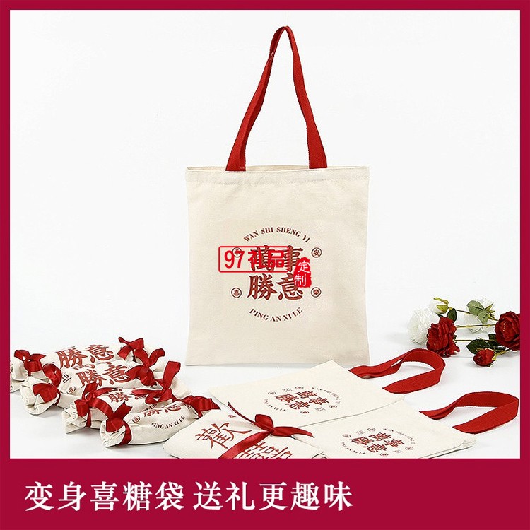 帆布袋糖果包裝袋萬事勝意手提袋可定制logo活動小禮品