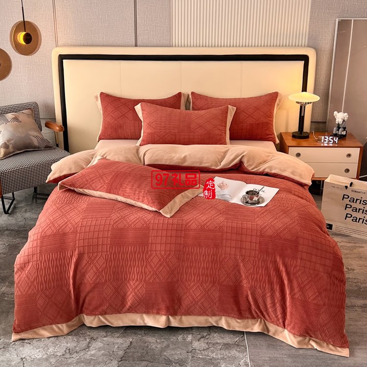 啄木鳥 牛奶絨雕花四件套-豆沙 ZMN-NNR003定制公司廣告禮品