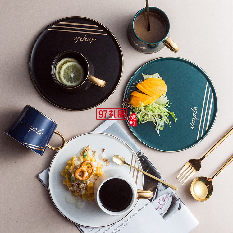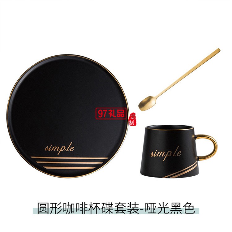 新品創(chuàng)意圓形杯碟套裝陶瓷杯咖啡杯馬克杯 可定制logo