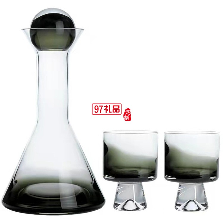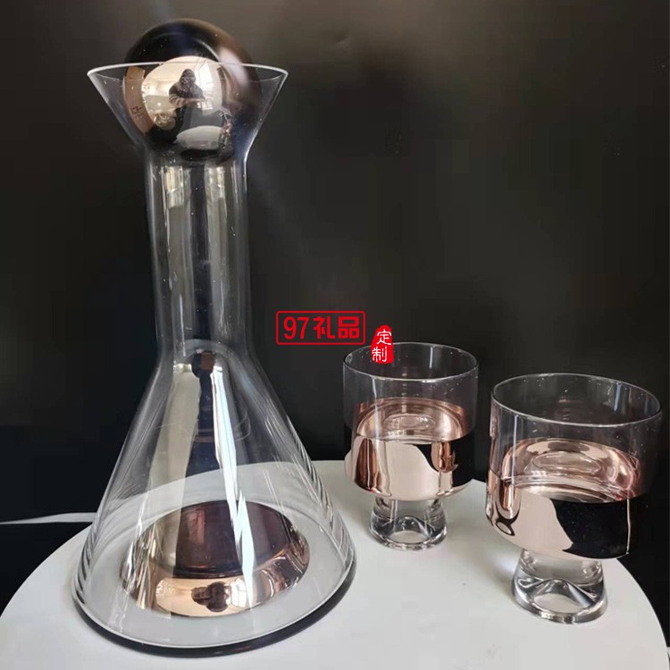 煙熏漸變色鍍銅玻璃壺涼水杯玻璃冷水壺玻璃水杯