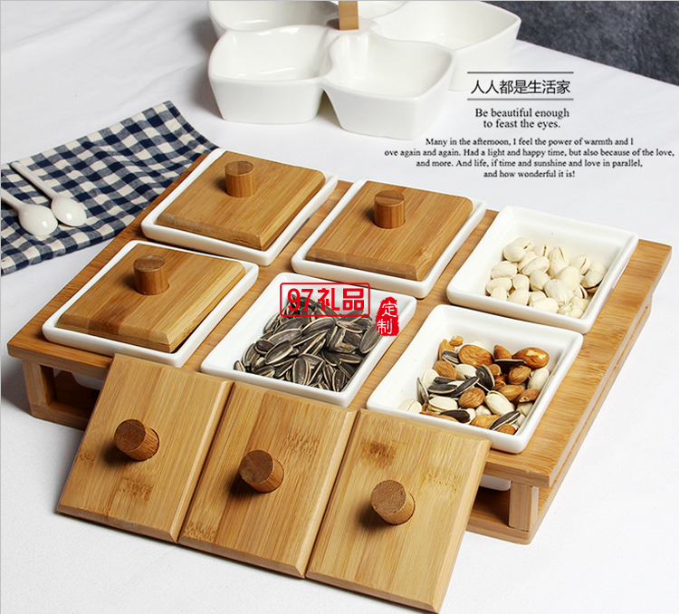 【店家推薦】:陶瓷搭配竹木系列的干果盒,六件套的比較適合擺放在客廳使用,簡約大氣,放置干果小零食類的還是非常不錯的,也可以當調味罐使用的哈,我們都有送勺子,勺子可以內置在盒子里哦。