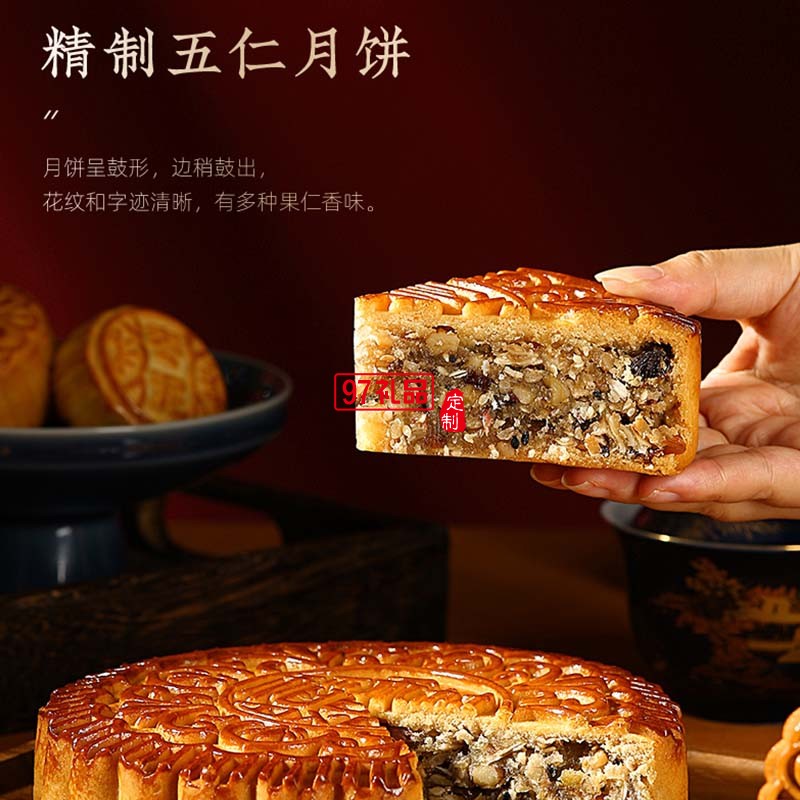 800g精制五仁月餅*1;50g流心奶黃月餅*2;