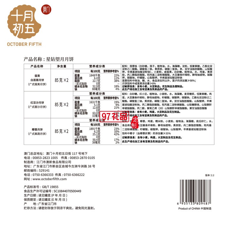 蛋黃蓮蓉紅豆沙月餅