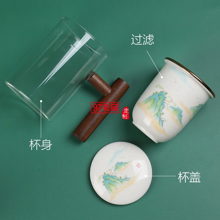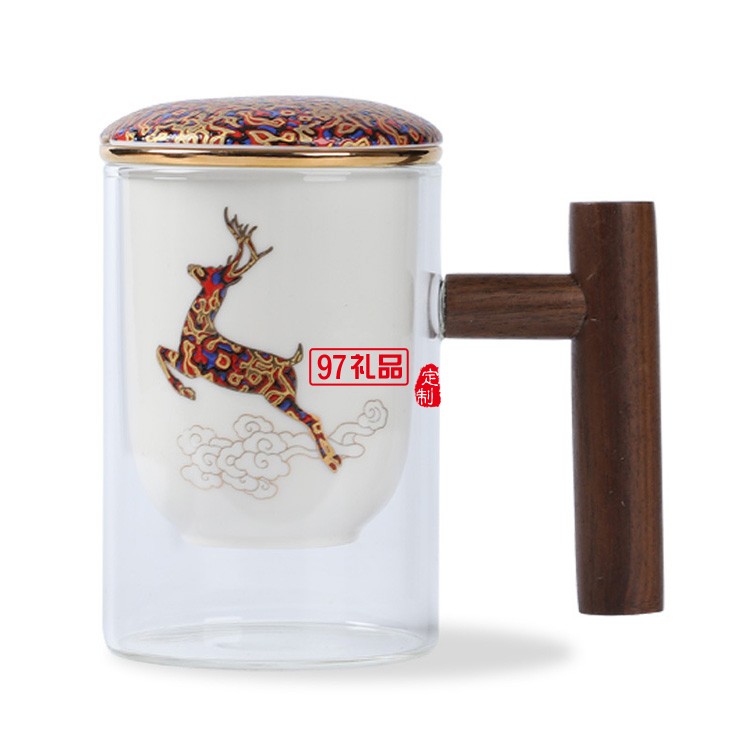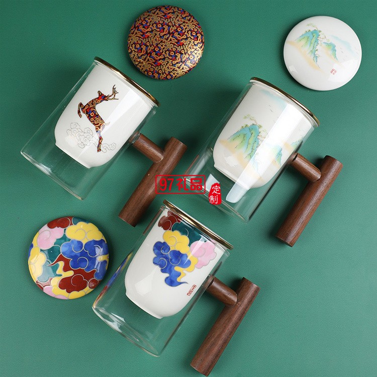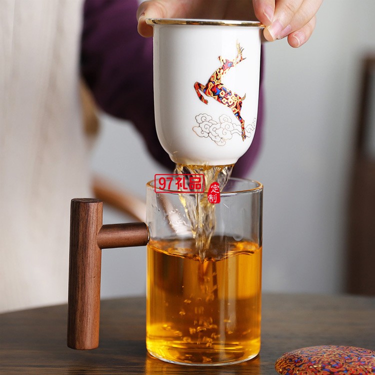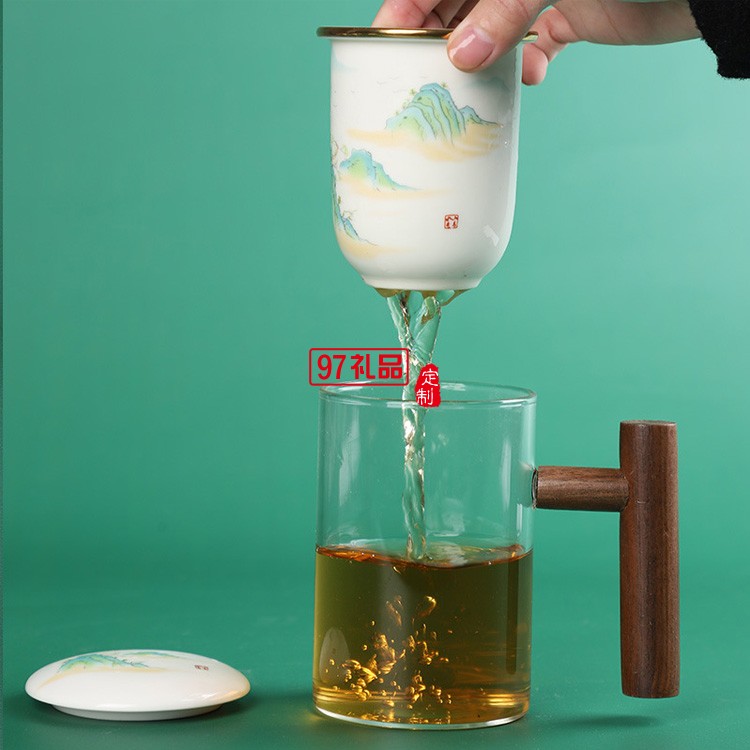 創意耐熱玻璃杯水杯馬克杯陶瓷內膽過濾辦公杯茶杯木手柄泡茶杯