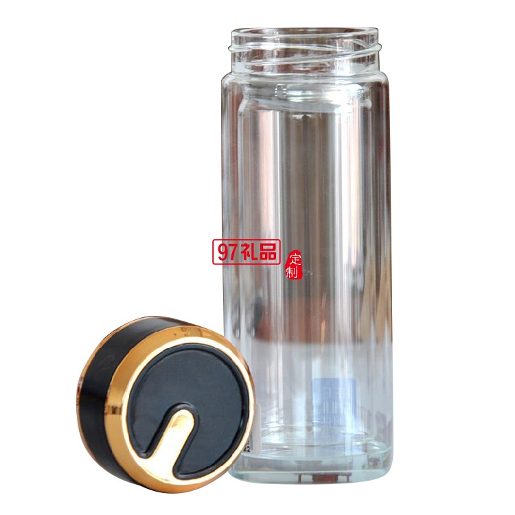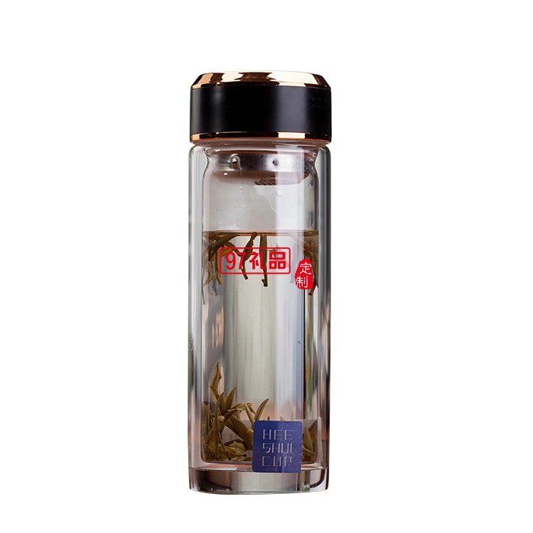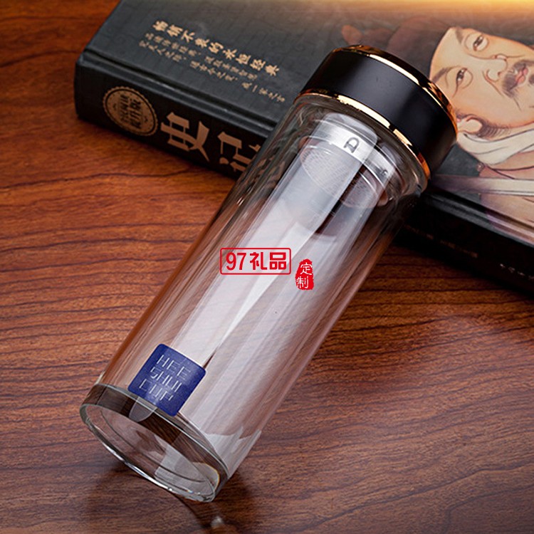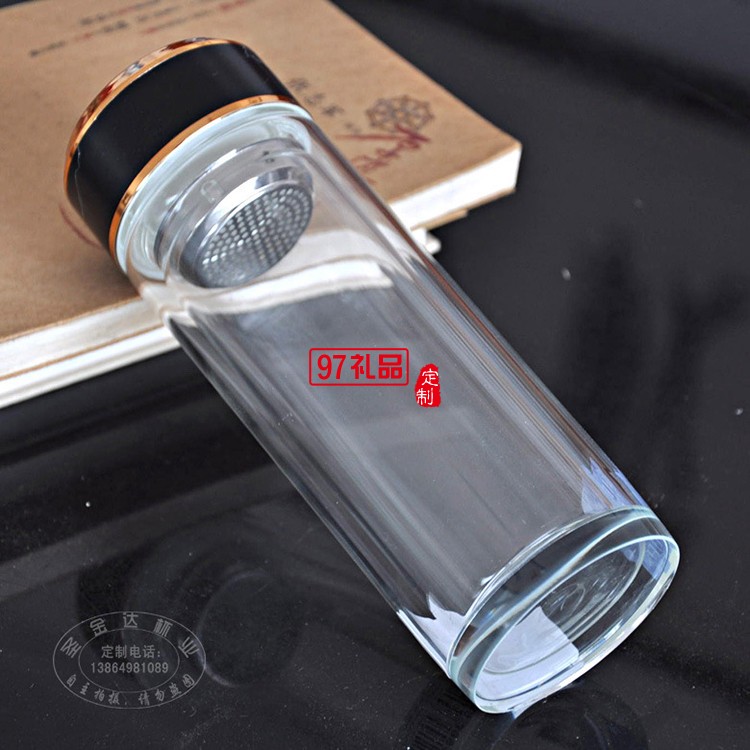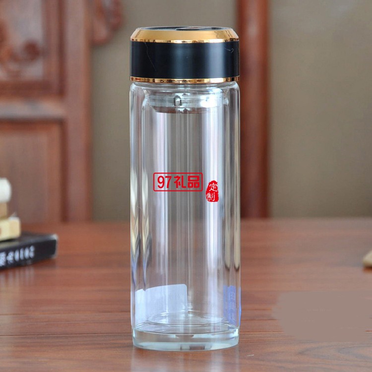 玻璃水杯雙層茶杯子定制廣告杯印字LOGO商務禮品水晶杯