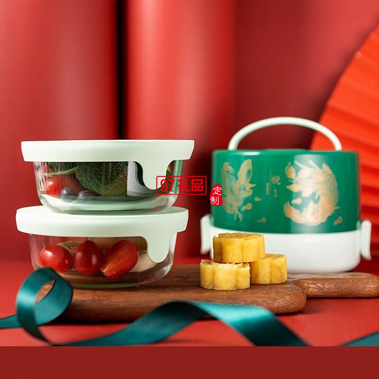 國風(fēng)便當(dāng)盒 復(fù)古便當(dāng)盒 耐熱玻璃便當(dāng)盒菁萃便當(dāng)盒一體套裝
