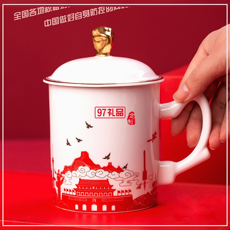 新款文創禮品陶瓷杯過濾套組志愿者抗疫紀念茶杯防疫中國力量杯子