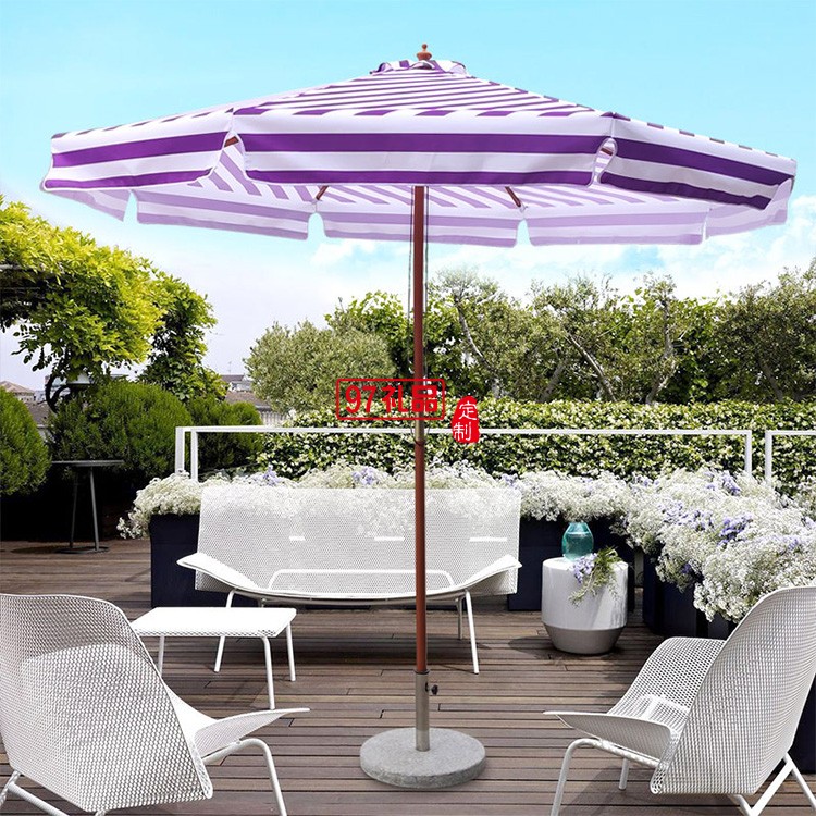 中柱木傘遮陽傘戶外庭院傘露臺(tái)花園咖啡廳奶茶店太陽傘條紋大號(hào)傘