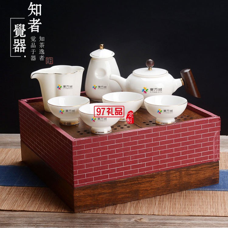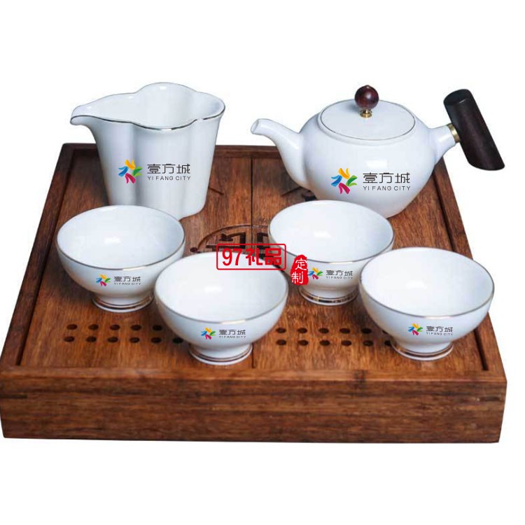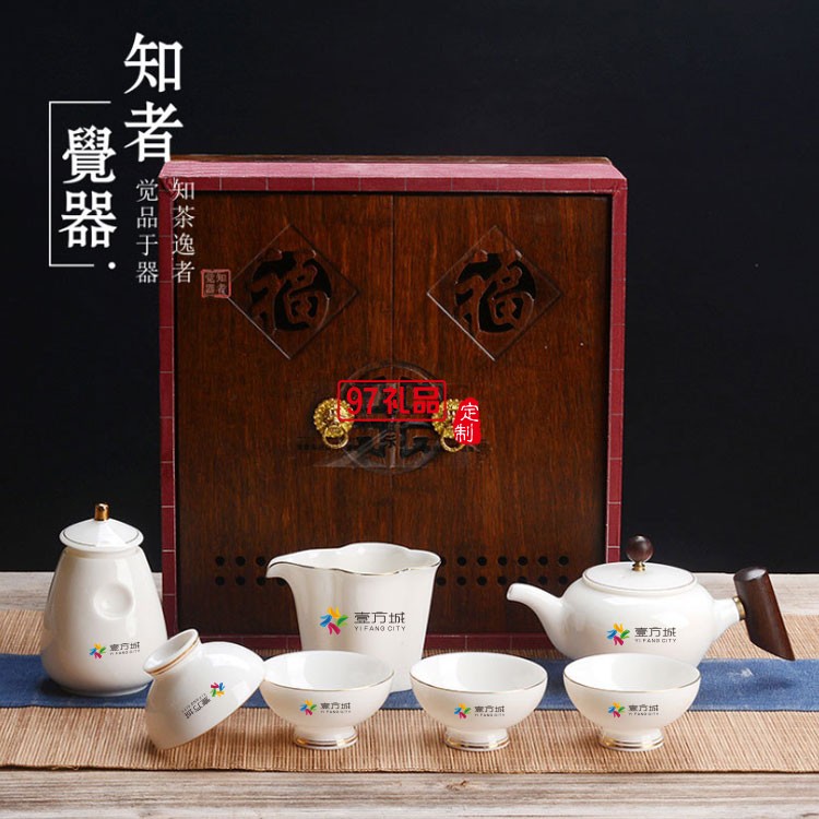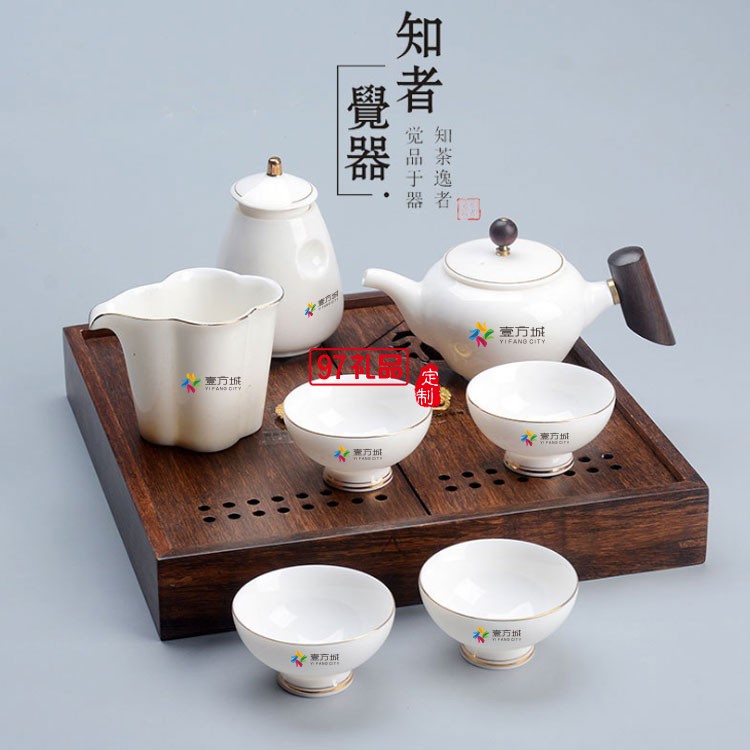 壹方城定制羊脂玉茶具套裝 商務禮物  可定制logo