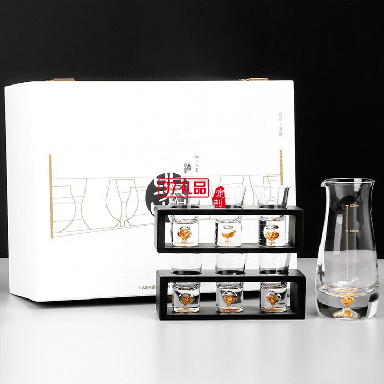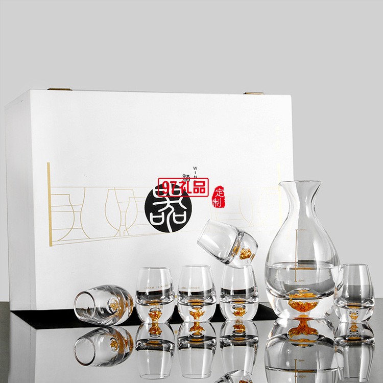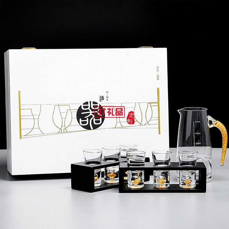 分酒器 水晶玻璃茅臺小酒杯 創意金箔烈酒杯酒壺酒具禮盒套裝