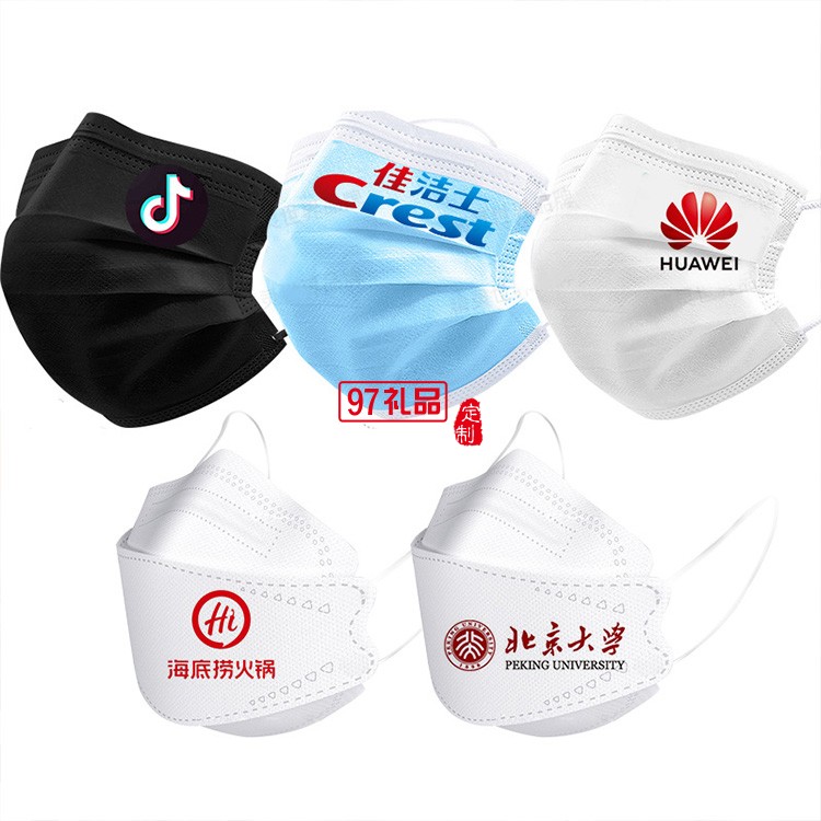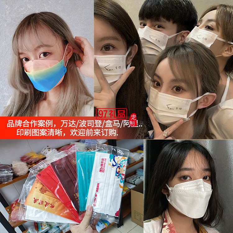 KF94定位定制口罩印圖案logo文字成人一次性平面企業(yè)宣傳口罩定制