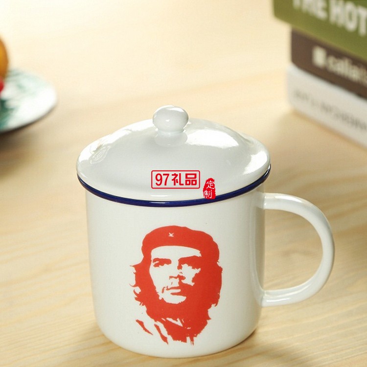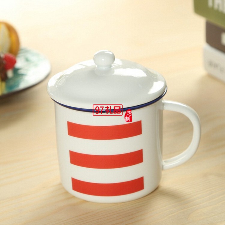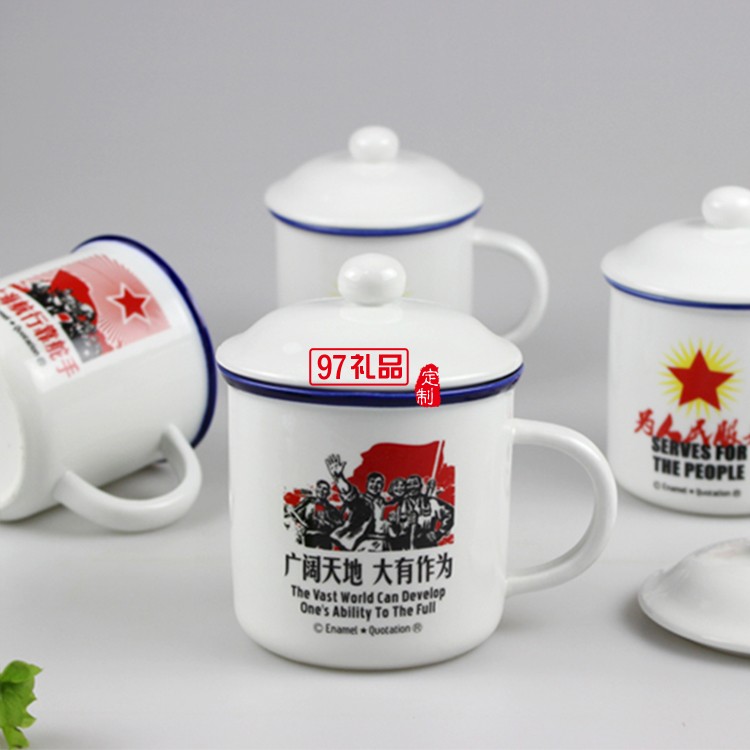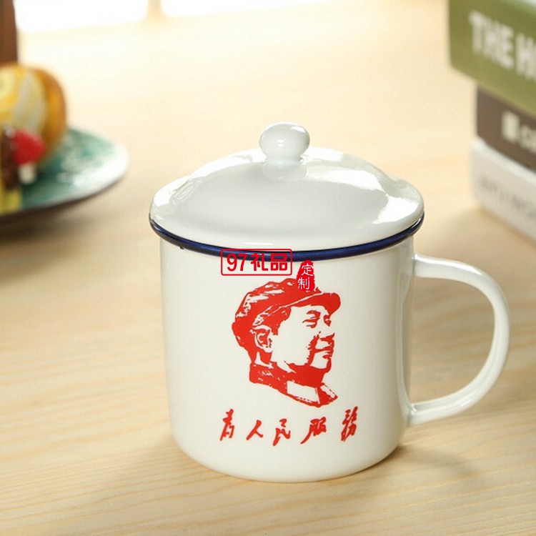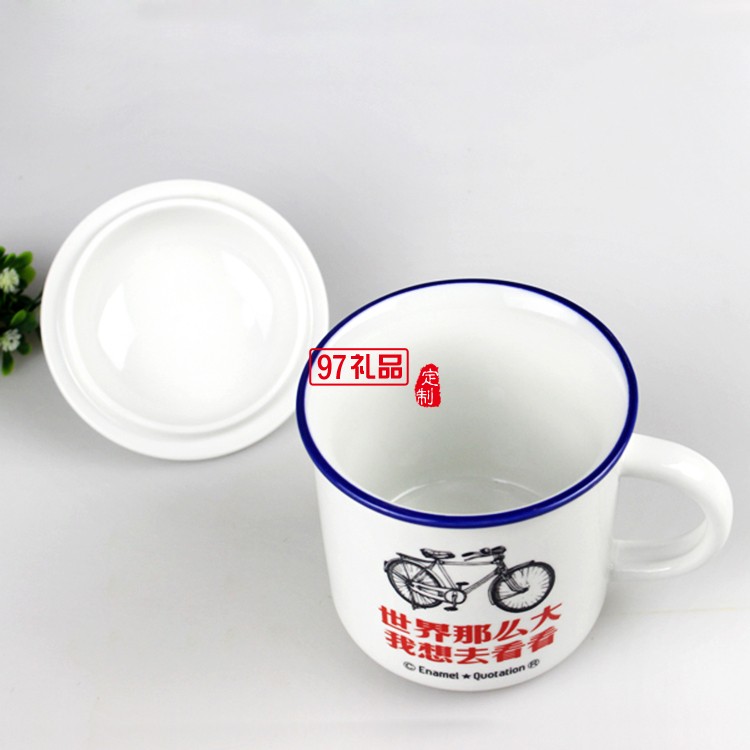 陶瓷杯 懷舊復古仿搪瓷杯 帶蓋馬克杯 陶瓷水杯 80后語錄水杯