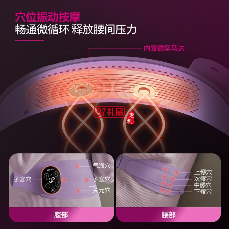 飛利浦腰部按摩器暖宮帶無線一體化 振動熱敷 3202B定制公司廣告禮品