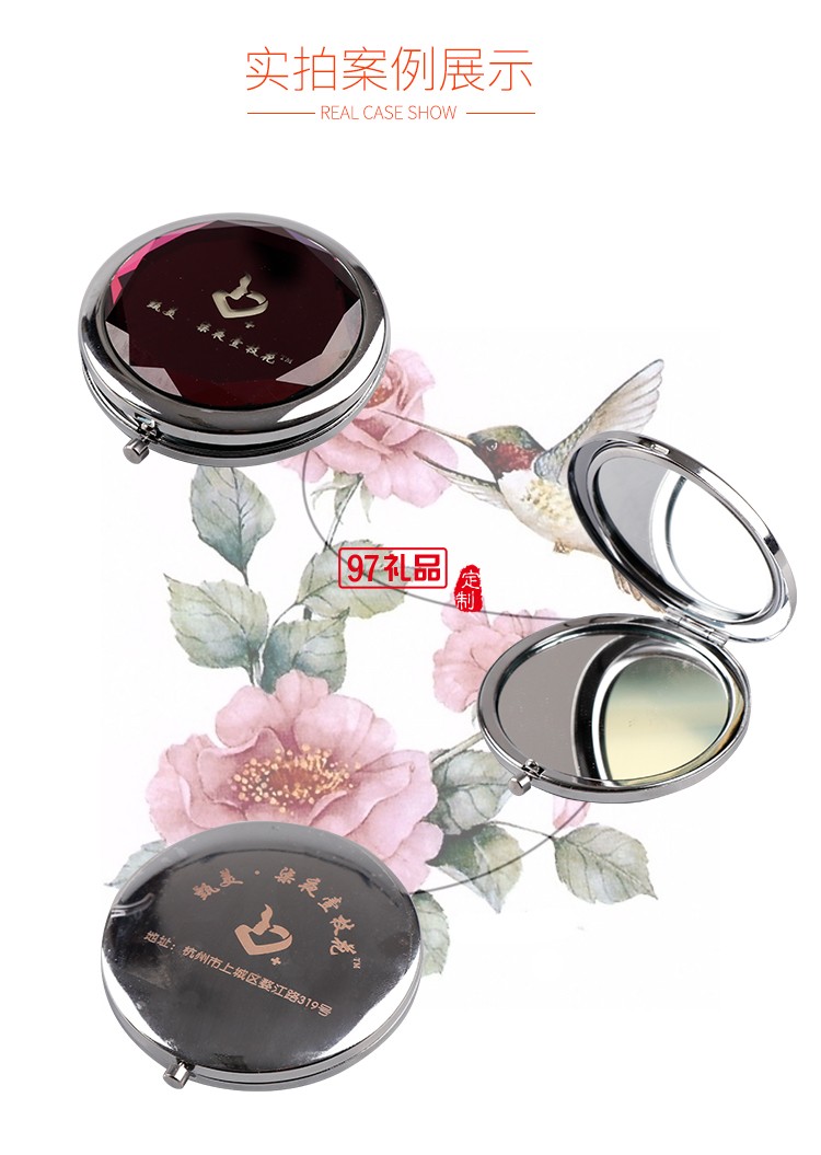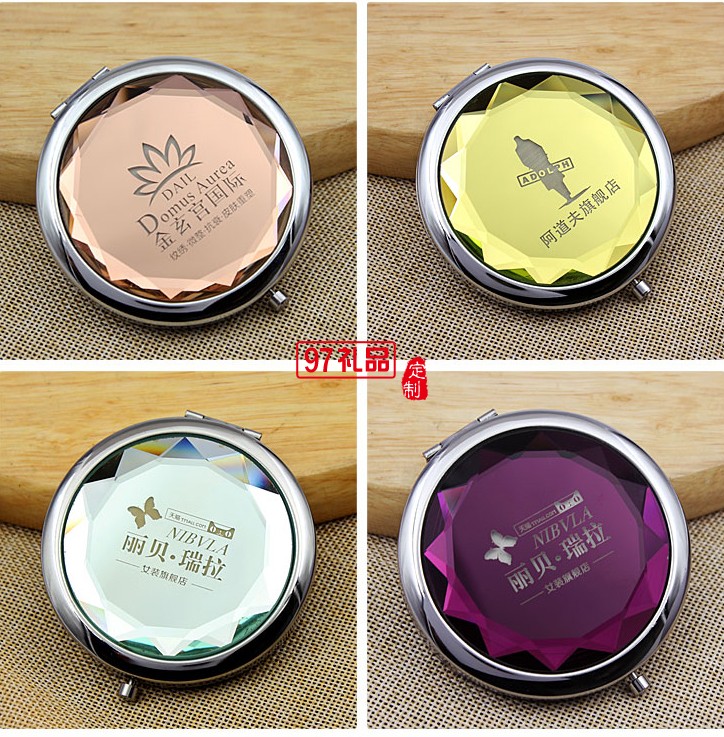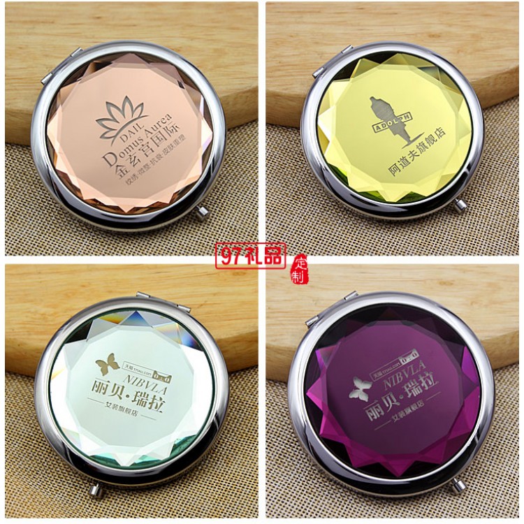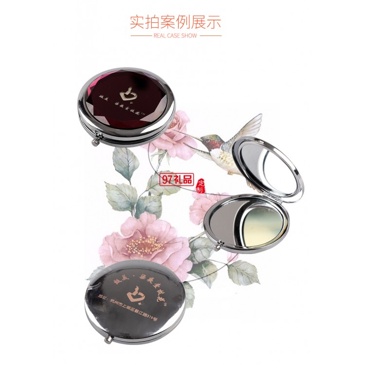 高檔金屬化妝鏡雙面折疊便攜水晶小鏡子活動小禮品定制
