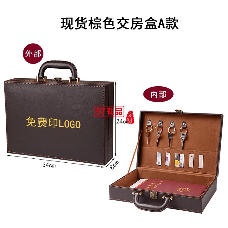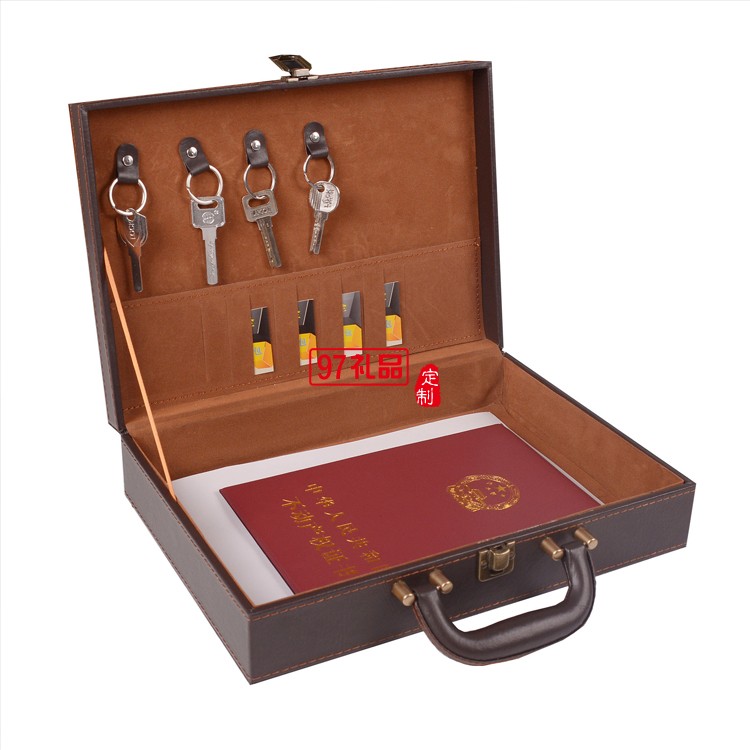 高檔皮革手提房地產a4合同交付鑰匙盒