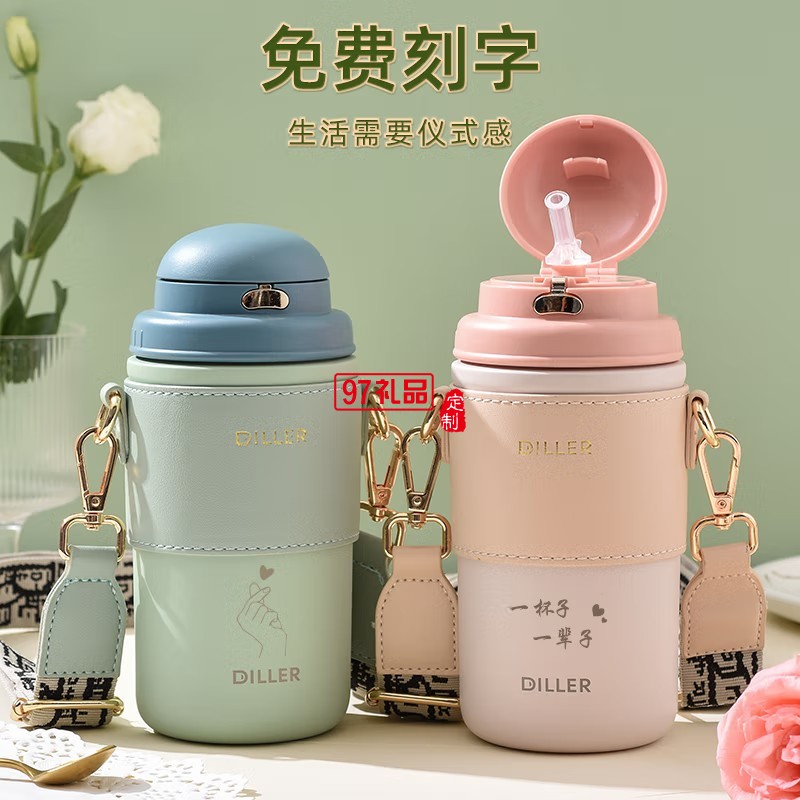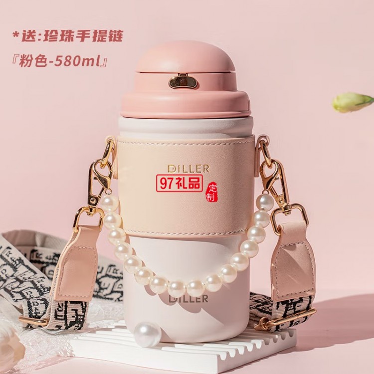 迪樂(lè)貝爾高顏值大容量帶吸管保溫水杯學(xué)生便攜隨手杯不銹鋼咖啡杯