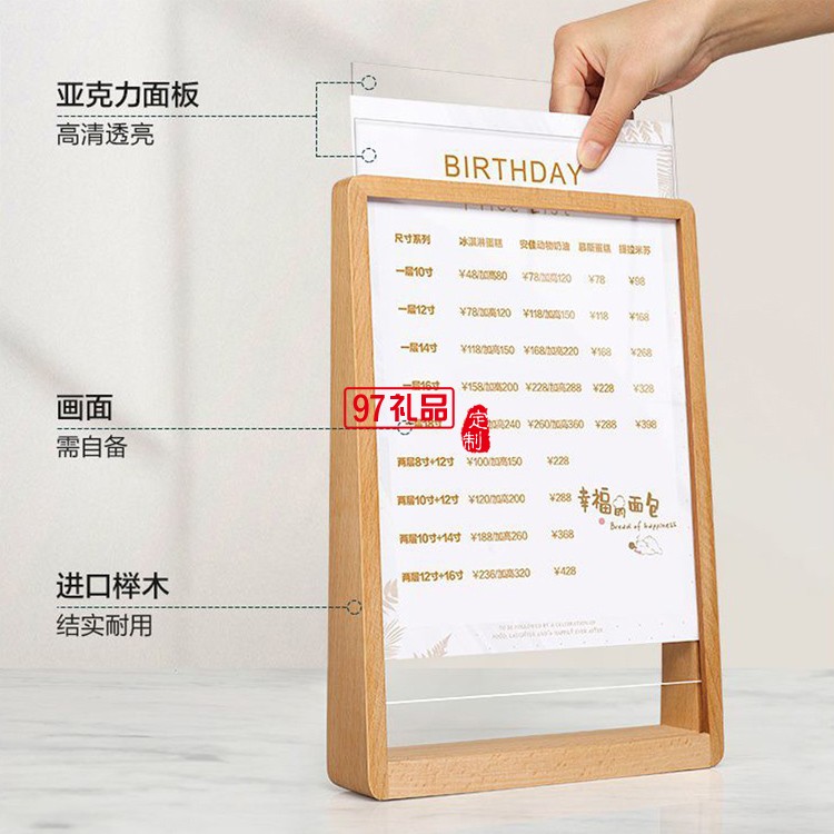 創(chuàng)意A4木質(zhì)框架桌面立牌臺卡木質(zhì)相框 可定制logo活動小禮品