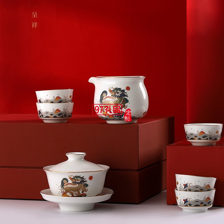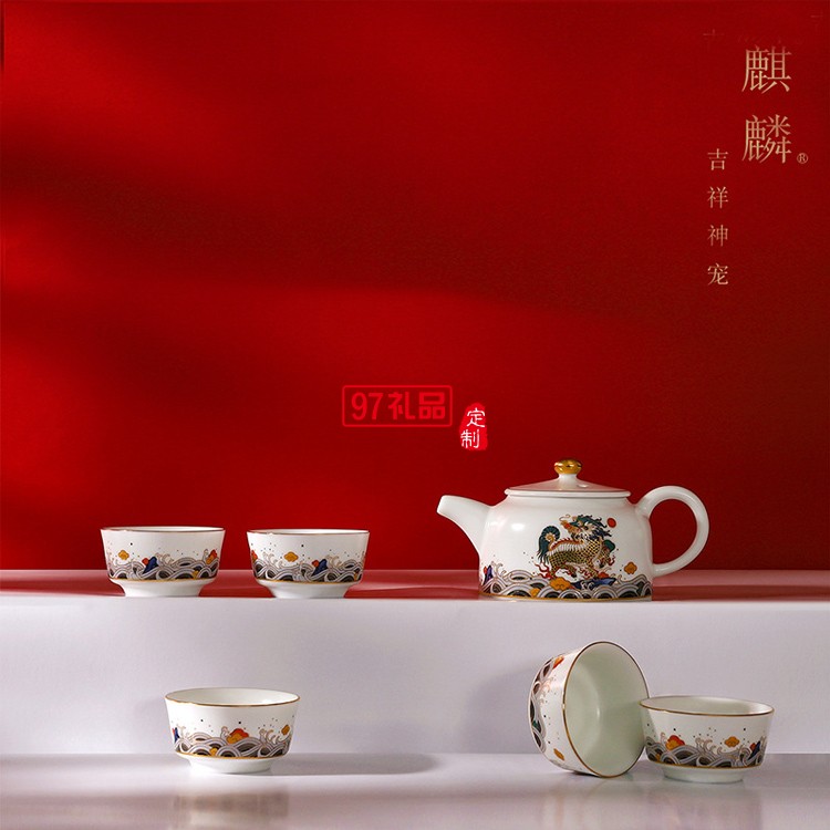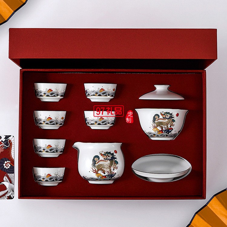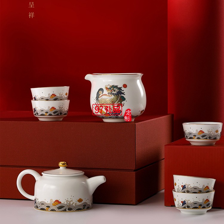 國潮風陶瓷茶具功夫茶具套裝陶瓷茶壺茶杯茶盞整套高端商務禮品定制