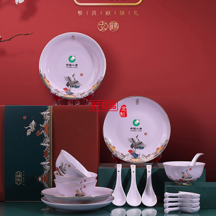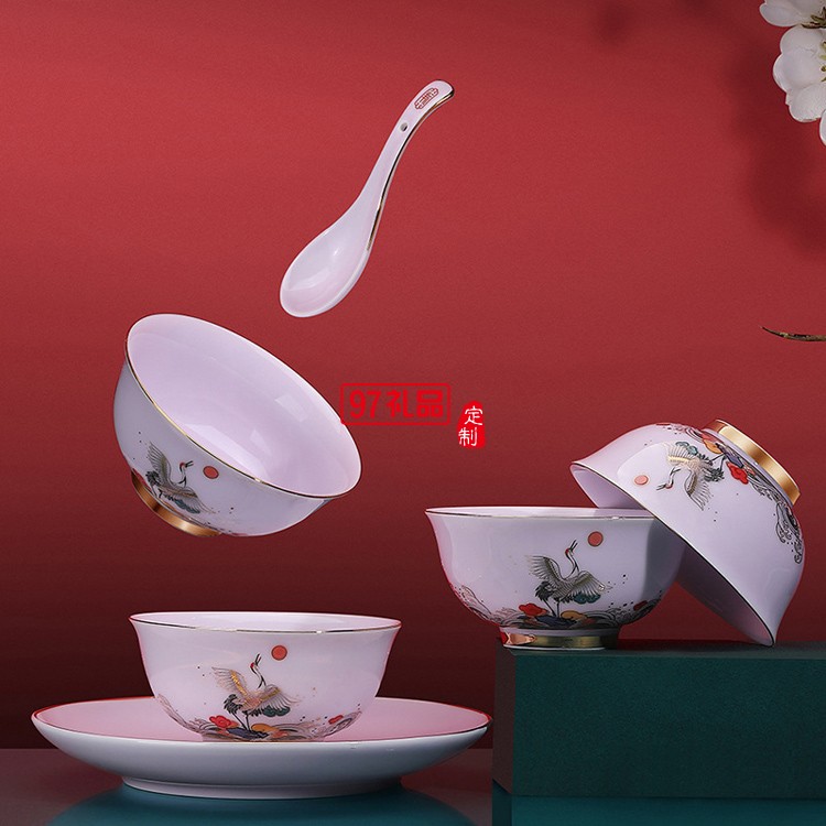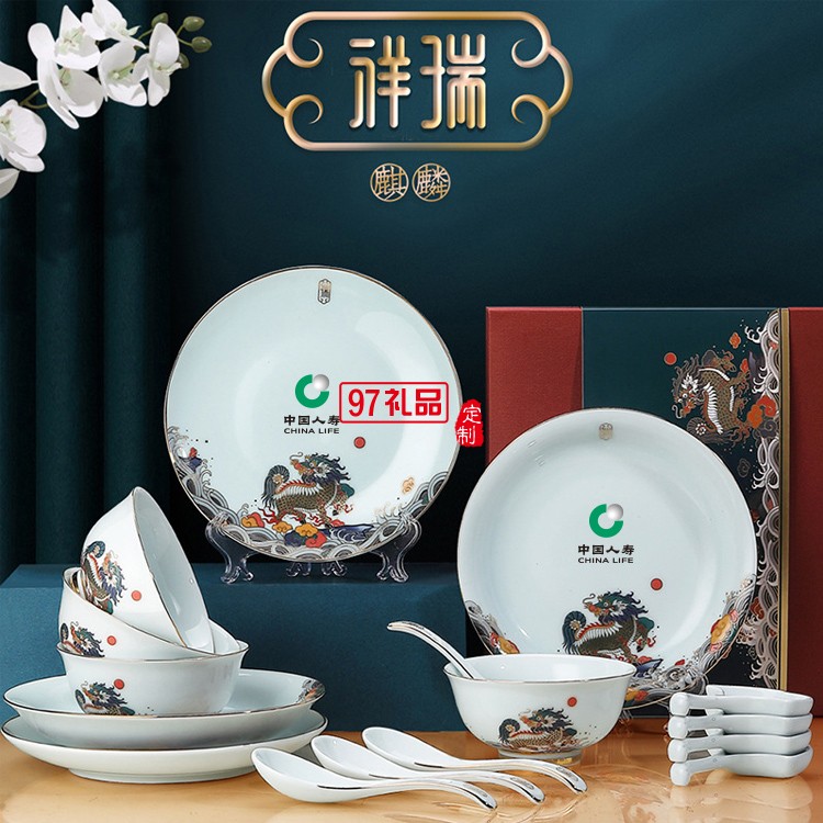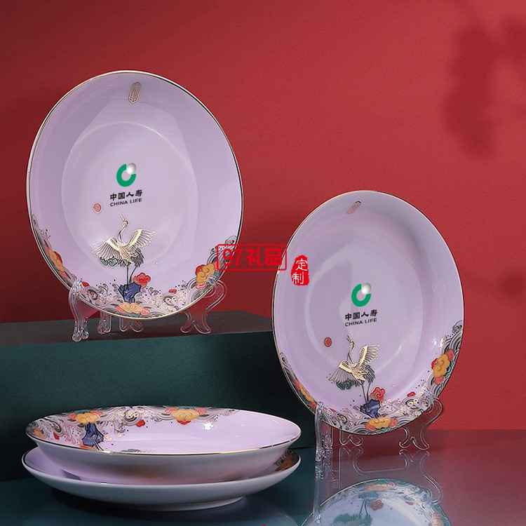 描金影青麒麟玄鶴款餐具新款祥瑞玉瓷碗盤