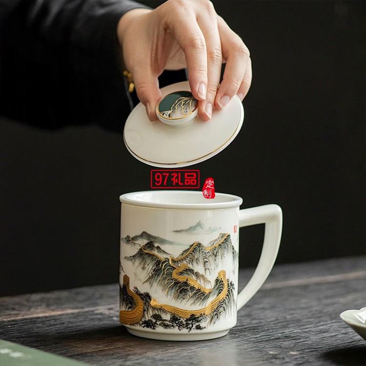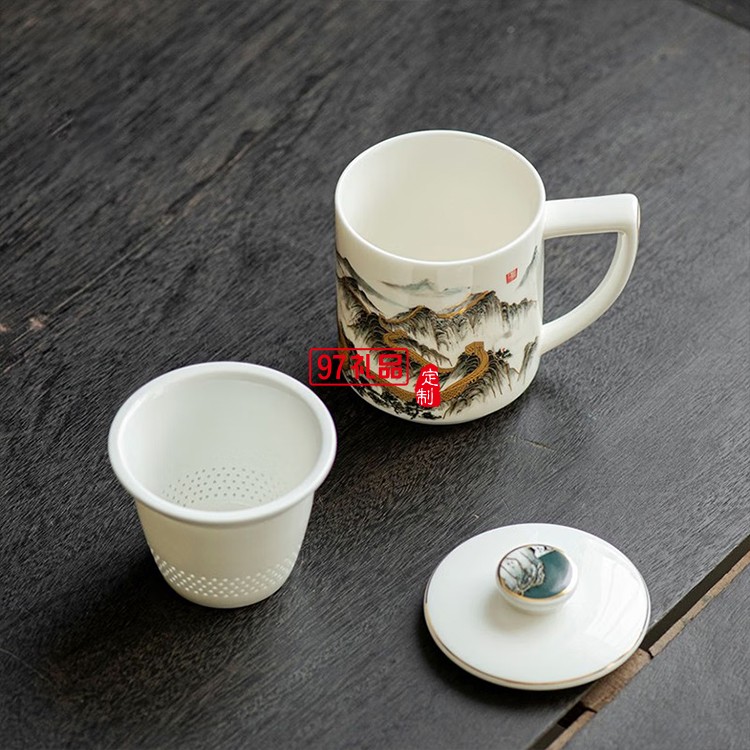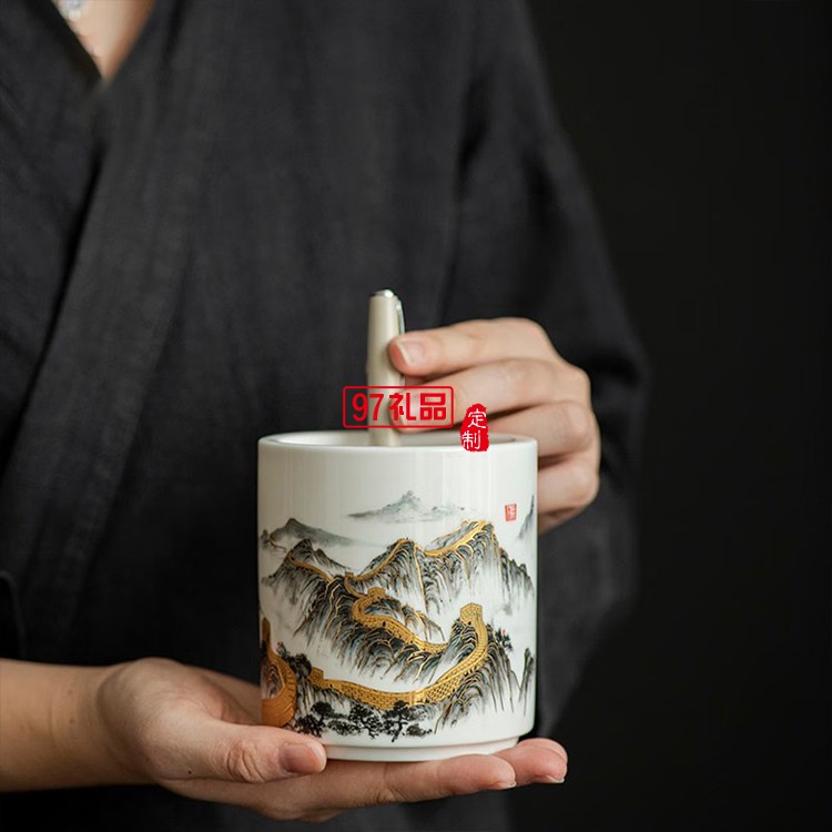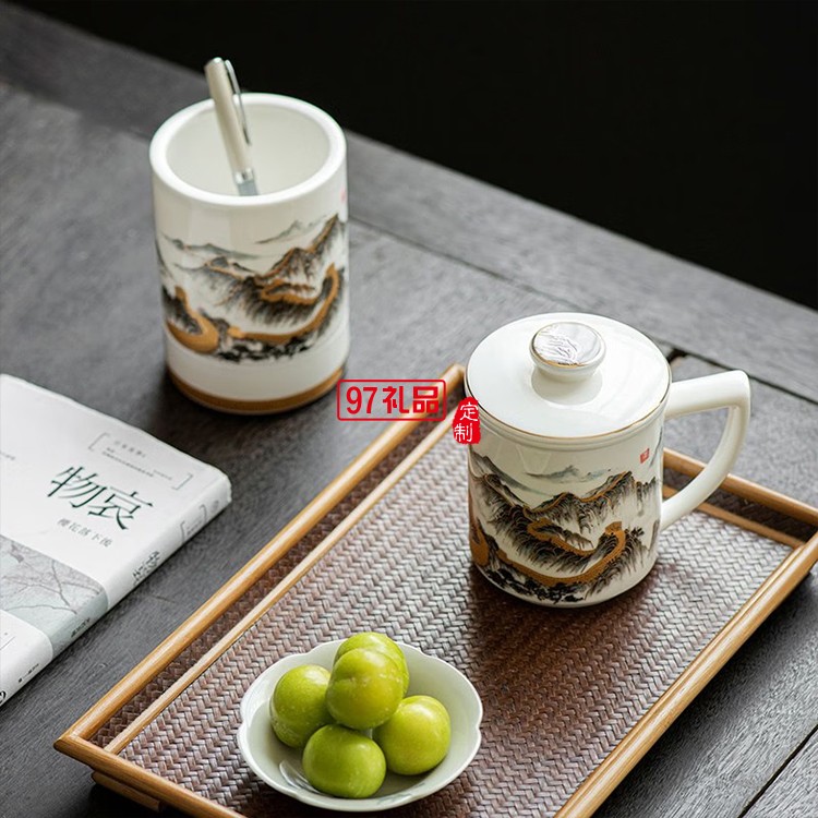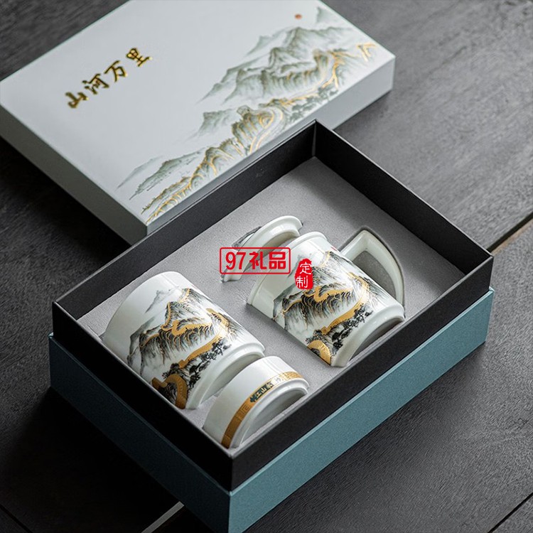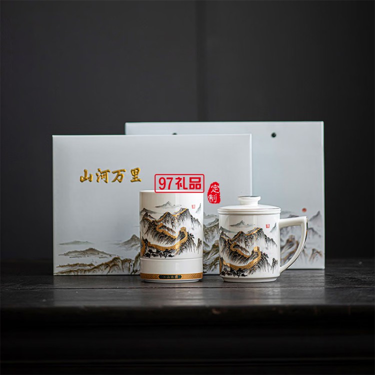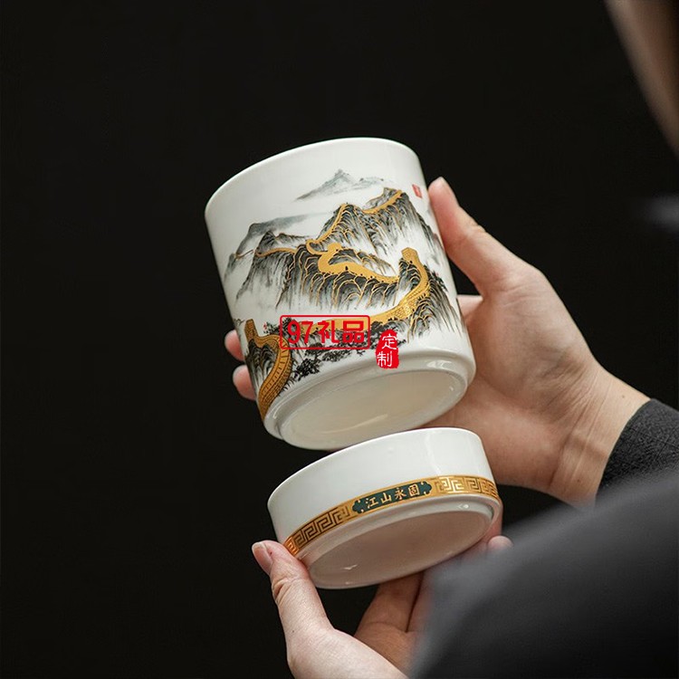 • 商品名稱:葉客(YECOH)茶杯三件套茶水分離筆筒收納罐山河萬里高端禮盒套裝