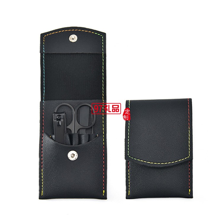 定制炫黑折袋指甲剪4件套設(shè)計(jì)logo碳鋼指甲刀禮品指甲鉗