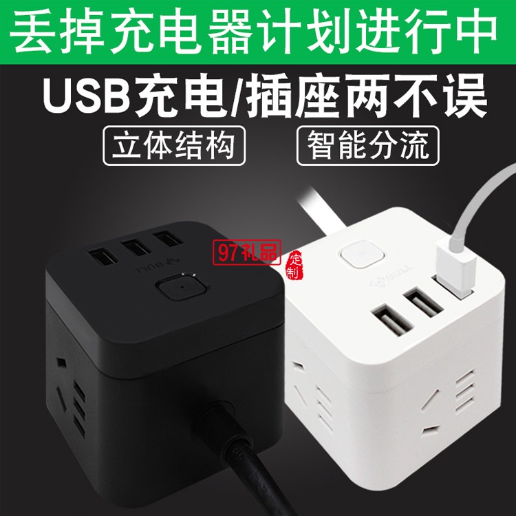 插座GN-U303H智能USB充電魔方插排插線板接線板定制公司廣告禮品