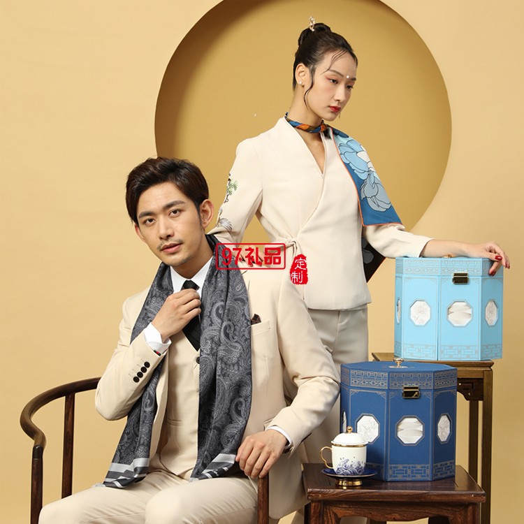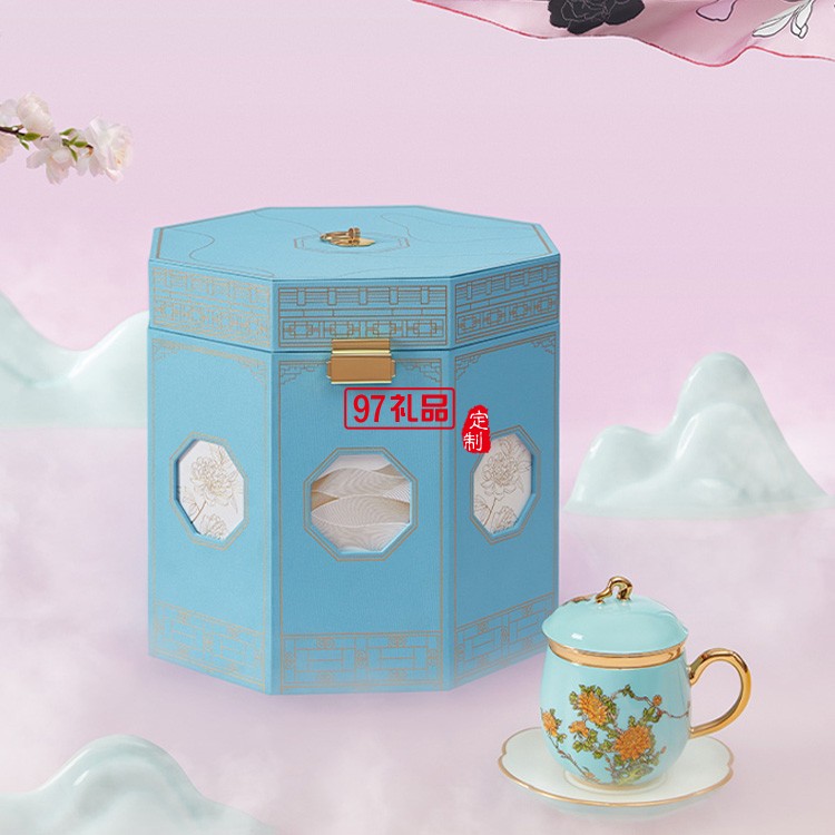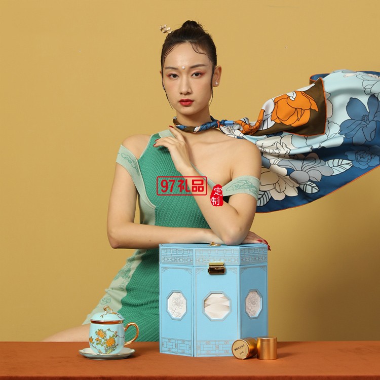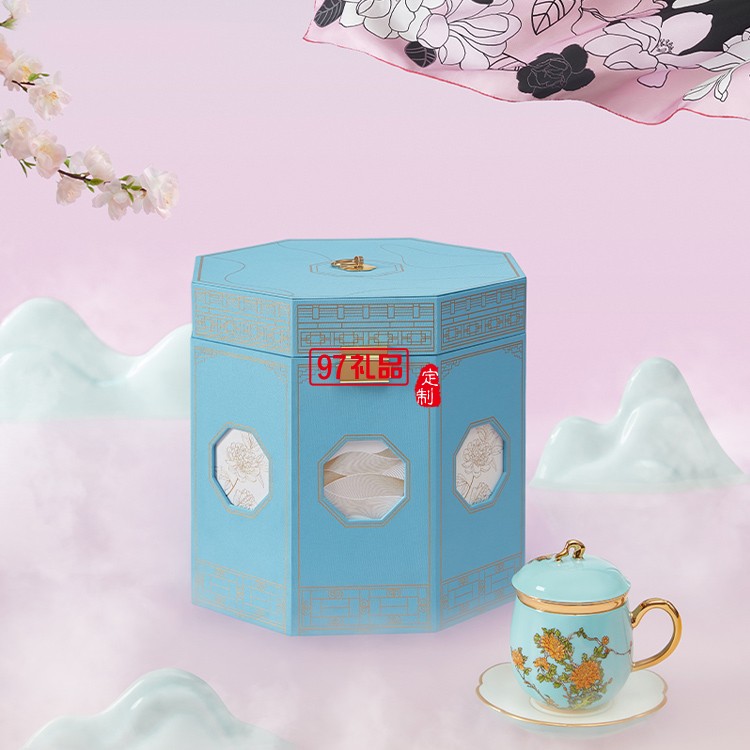 高端絲巾茶葉陶瓷杯禮盒套裝