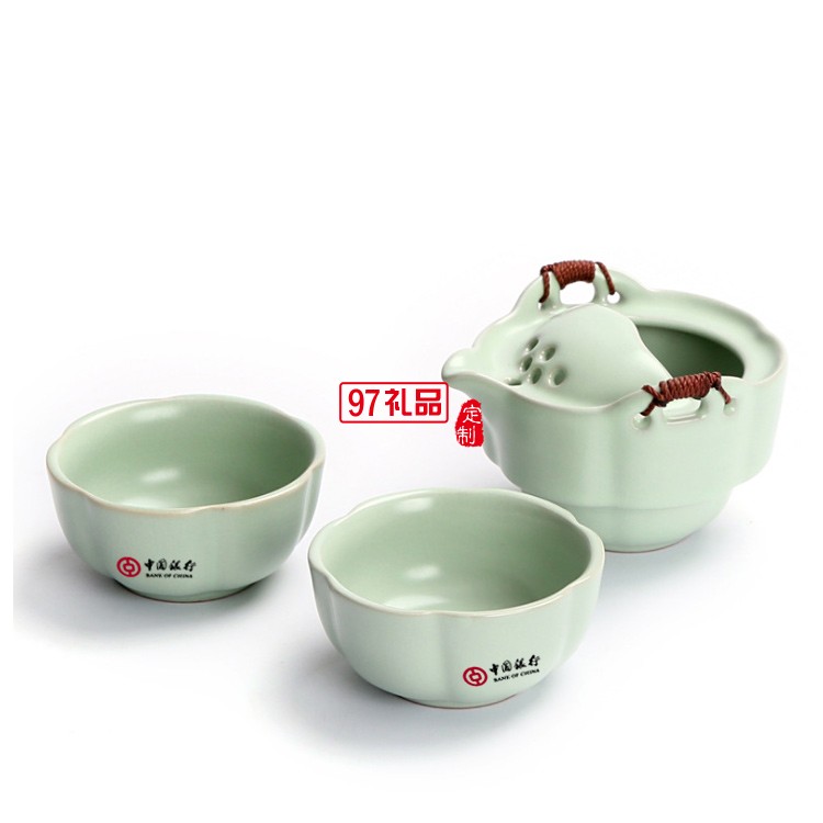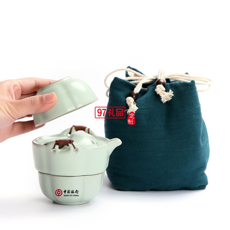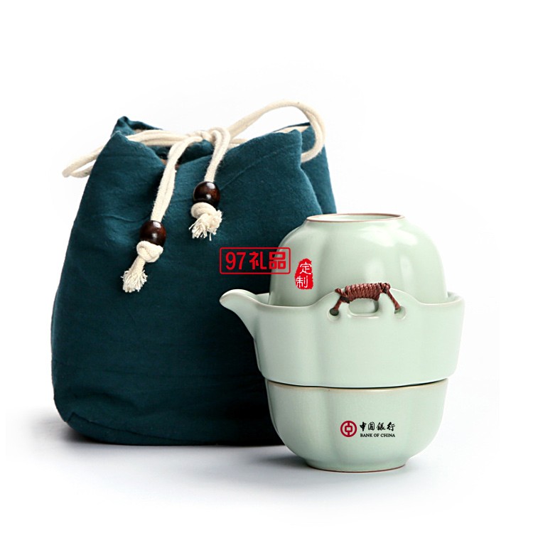 中國銀行定制 功夫茶具便攜式汝窯快客杯一壺一杯 可定制LOGO