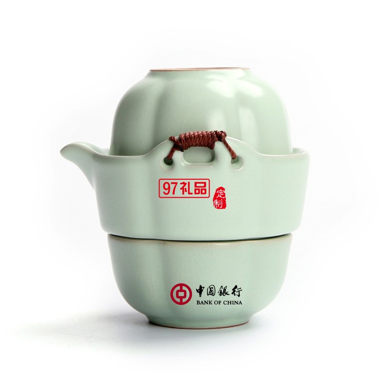 中國銀行定制 功夫茶具便攜式汝窯快客杯一壺一杯  可定制LOGO