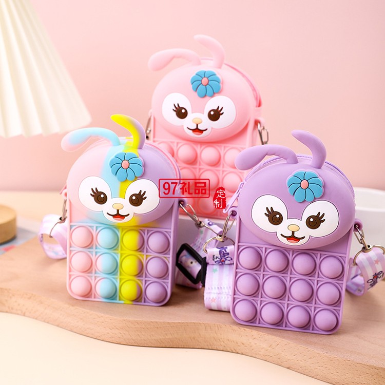 泡泡卡通星黛露硅膠零錢斜跨包可調節芭蕾兔兒童挎包