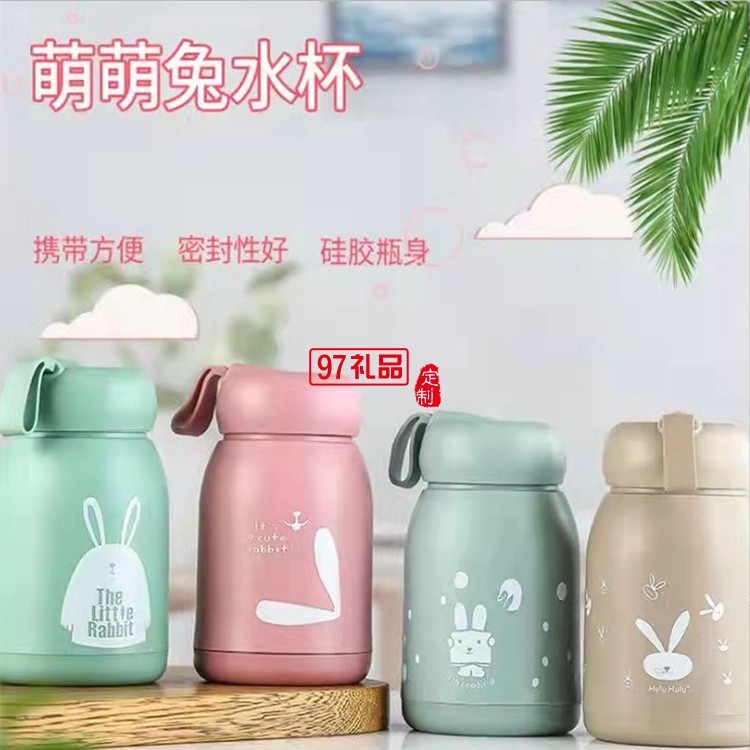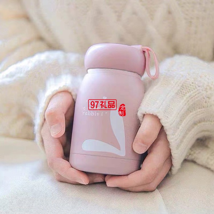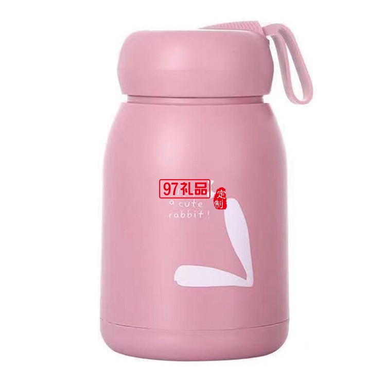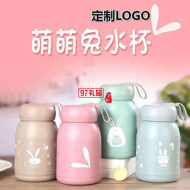 可愛萌萌兔水杯便攜式水杯學生帶提繩杯子