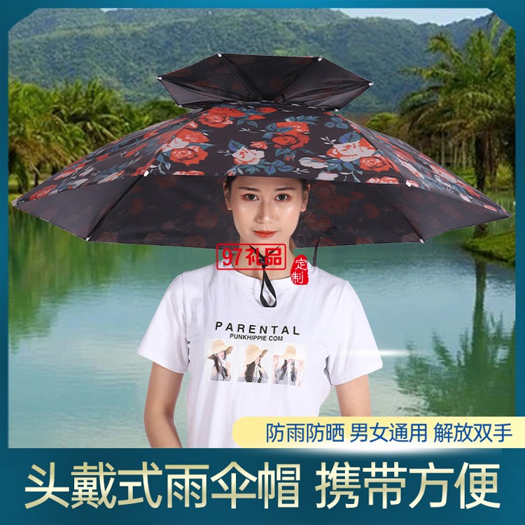 釣魚(yú)傘頭戴式帽子傘遮太陽(yáng)傘防雨防曬黑膠傘