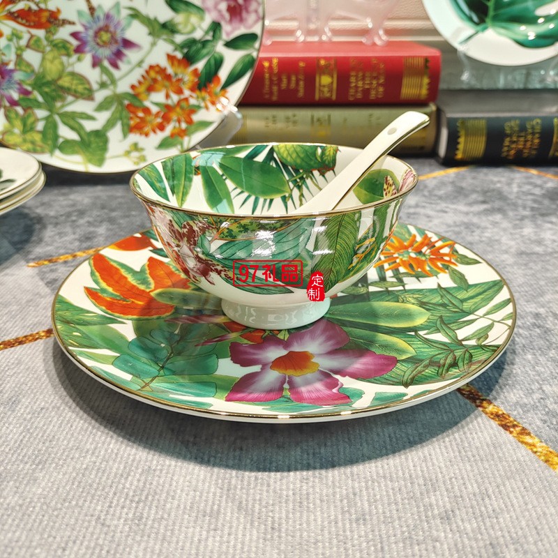 HERME愛馬歐式熱帶雨林系列36頭骨瓷餐具套裝禮盒描金中西式骨瓷