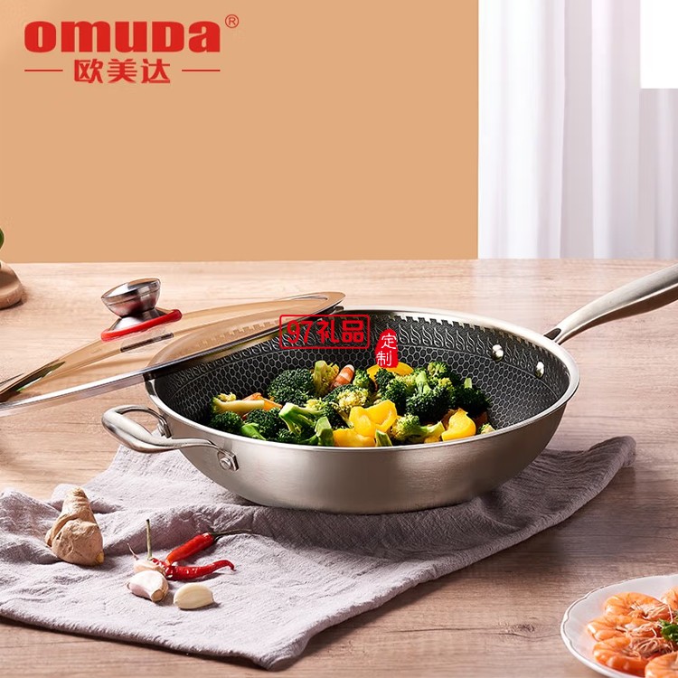 歐美達316不銹鋼物理不粘炒鍋多功能鍋 JZC30-A定制公司廣告禮品