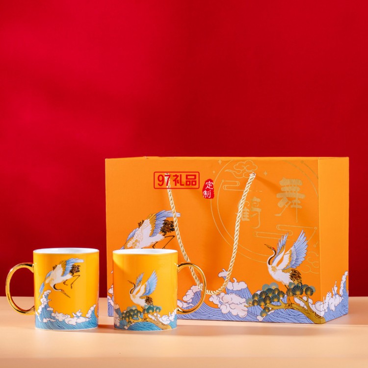 中秋禮品描金馬克杯對杯禮盒裝國潮風