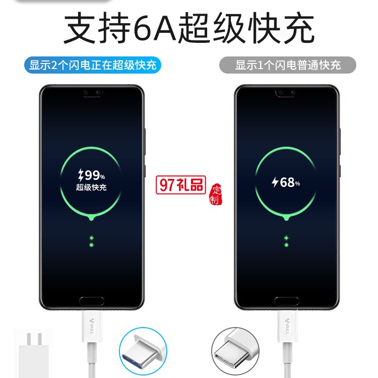 公牛5A數據線tpyec手機充電線快充線超級閃充定制公司廣告禮品